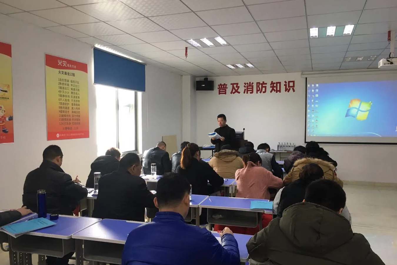 拥有理论及实训场地共 700 平方米,其中实训场地拥有先进、齐全的消防设施供学员操作。